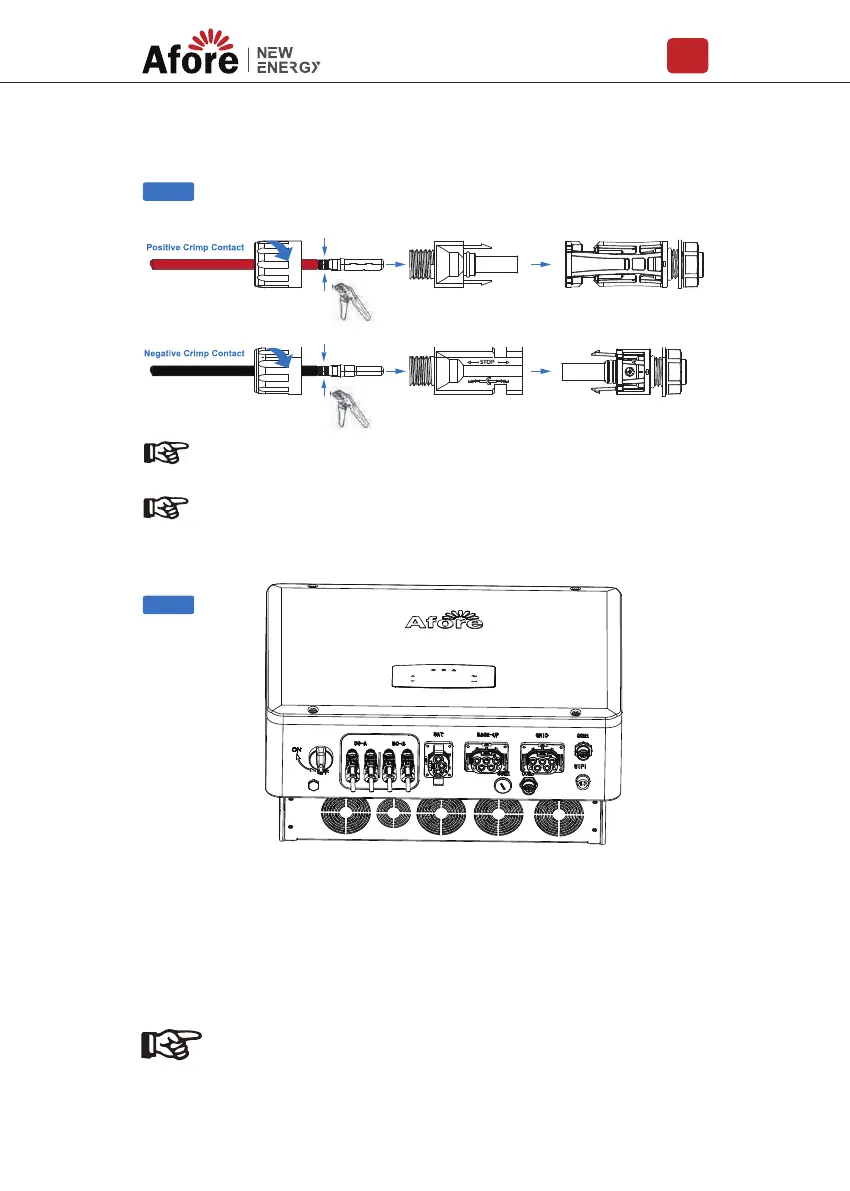 Please use PV connector crimper to pinch the point of the arrow.