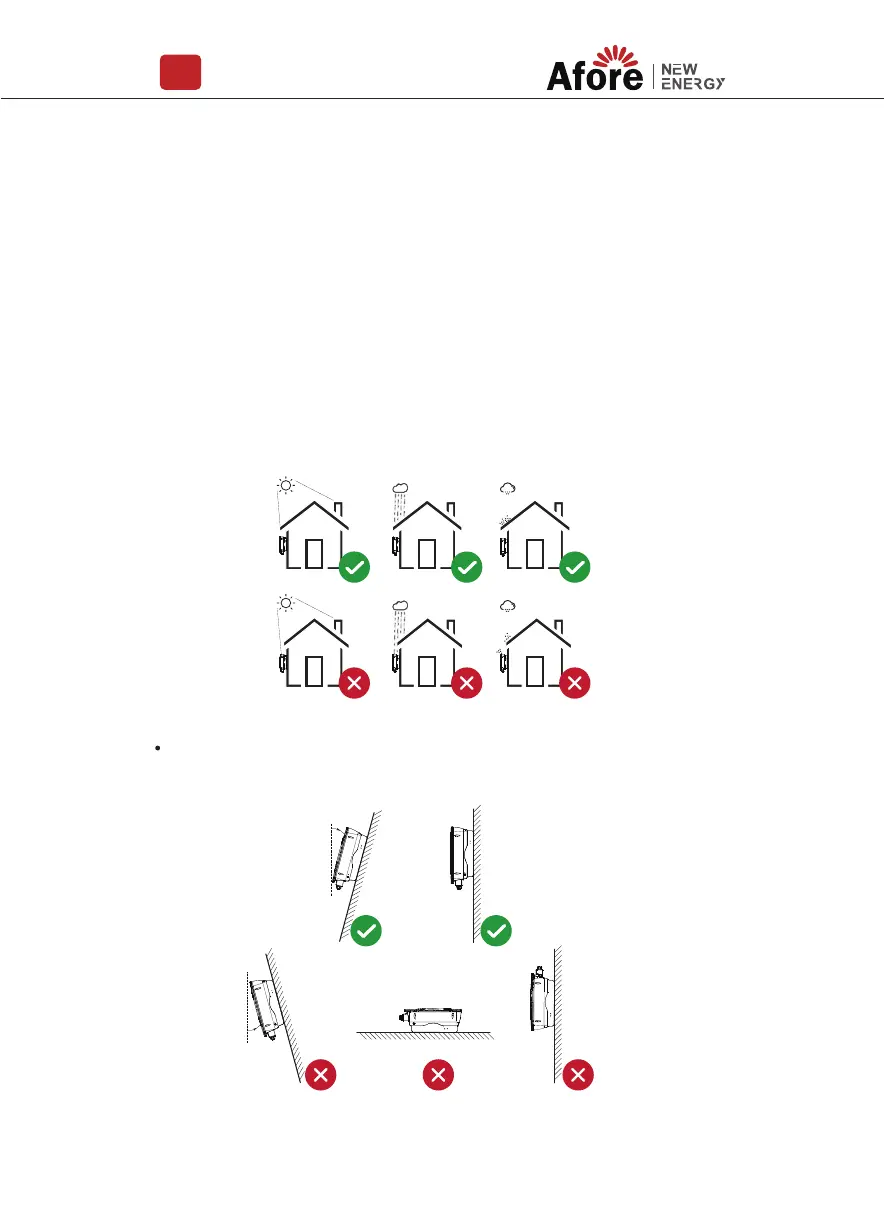 • The installation of inverter should be protected under shelter. Do not expose