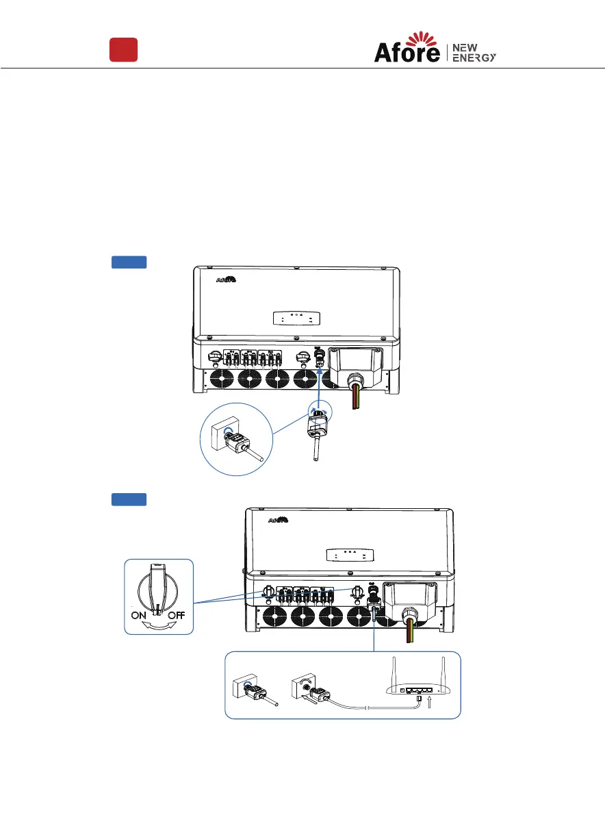 Turn on the DC switch and AC circuit breaker, and wait until the LED indicator