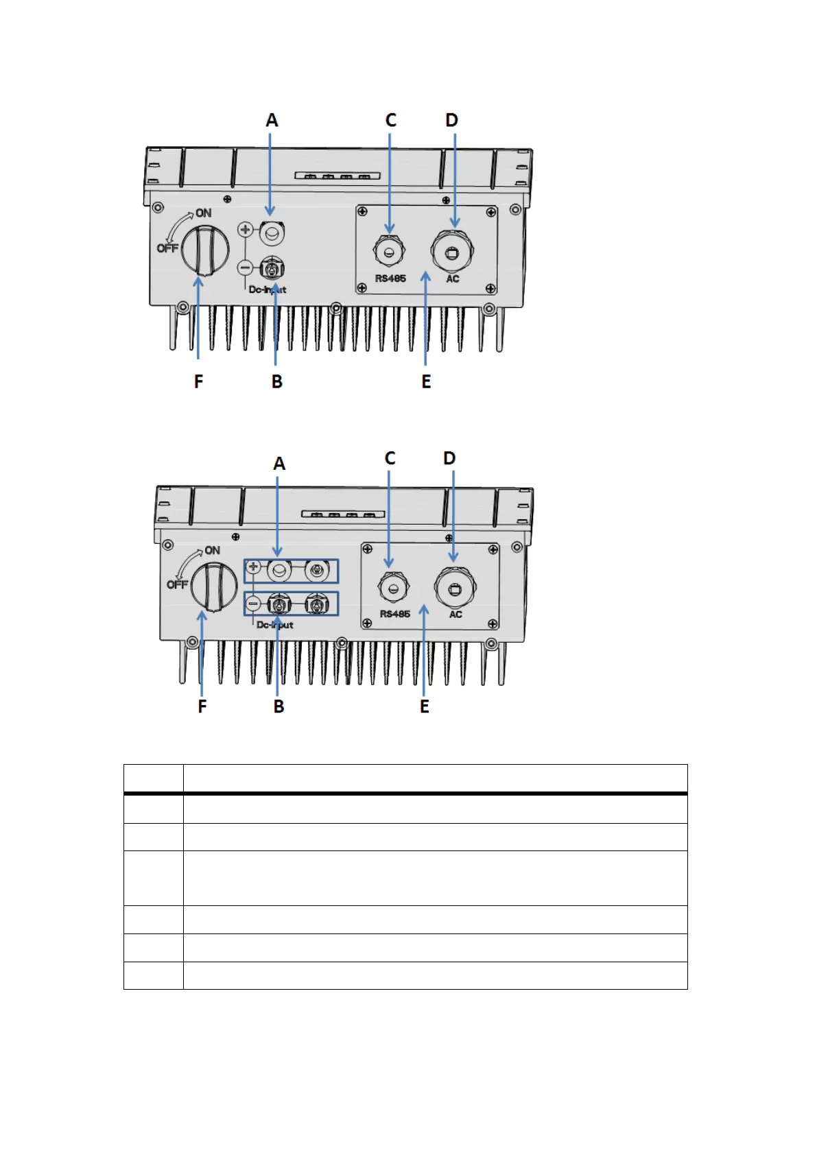 DC connectors ( − ) for connecting the PV strings