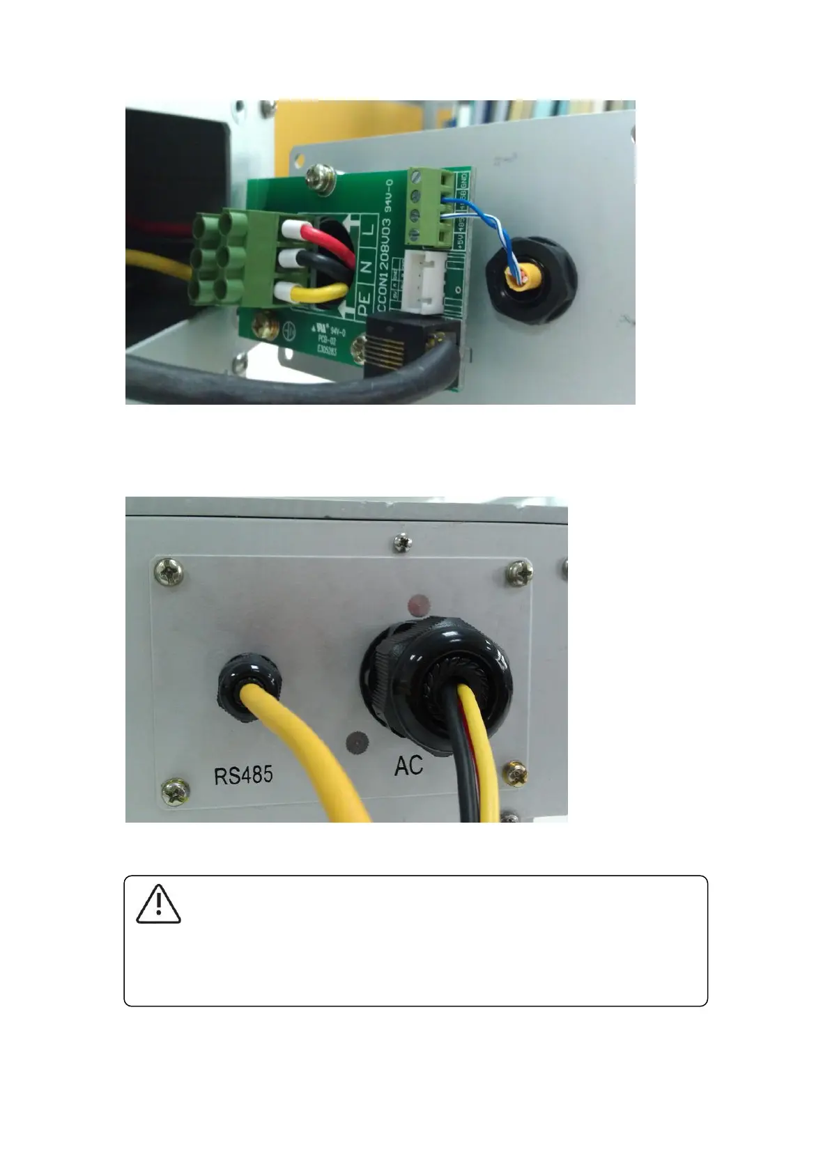 Close the cover plate and tighten the waterproof connector (C&D) and the screws.