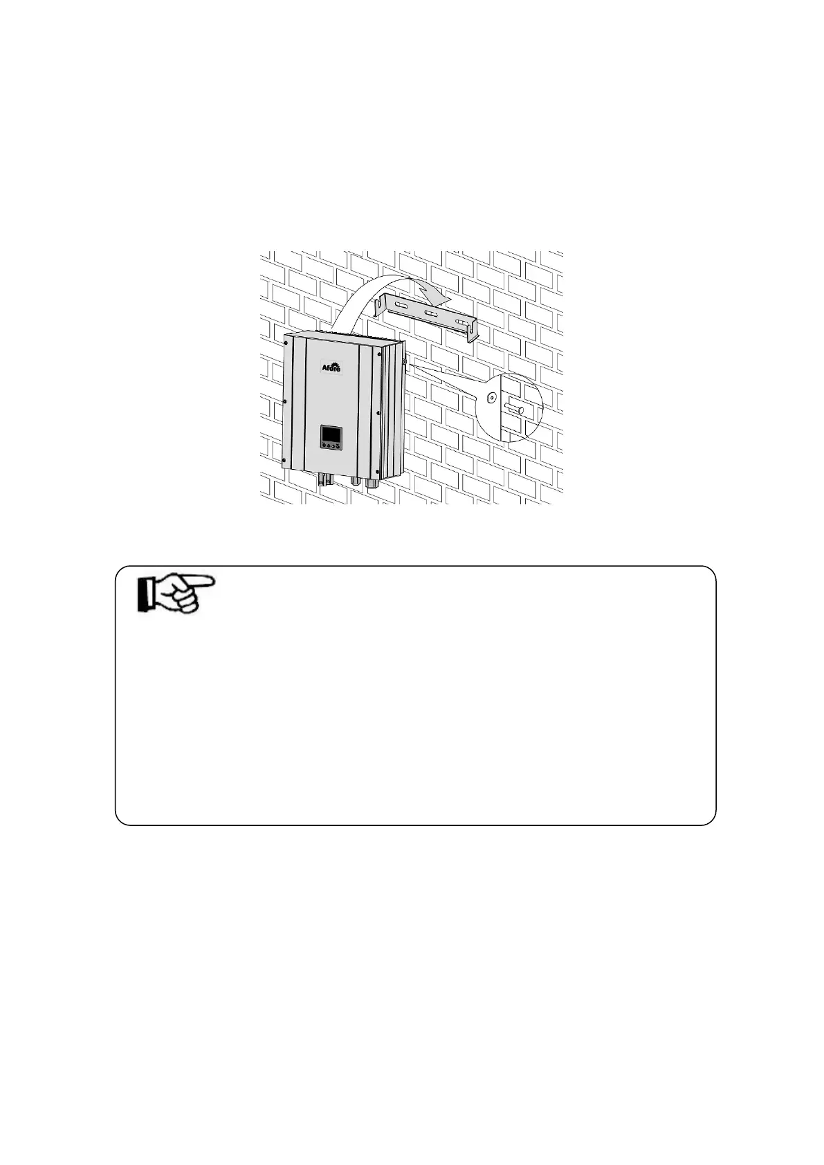 3. Hang the inverter to the mounting bracket and ensure the slot is fitted on the