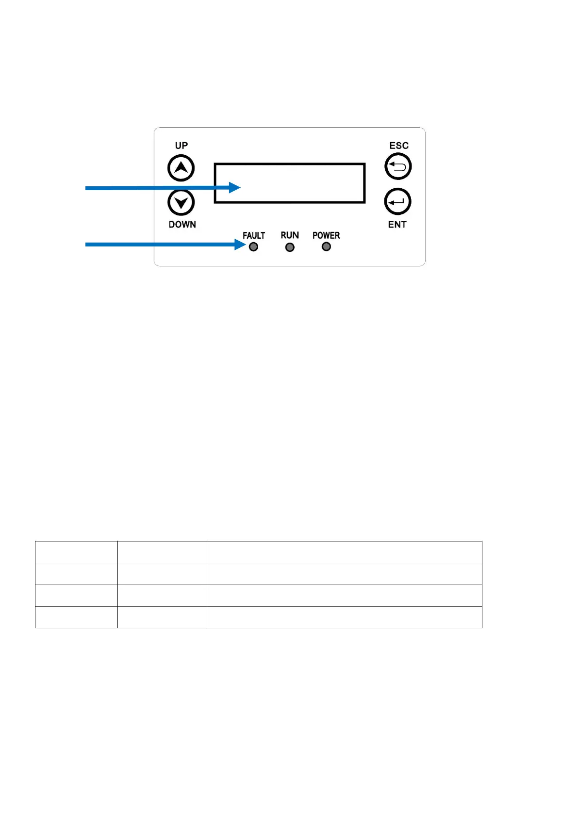 starts up. When FAULT turns on, it means there is faulty in the system or inverter and the faulty code will be