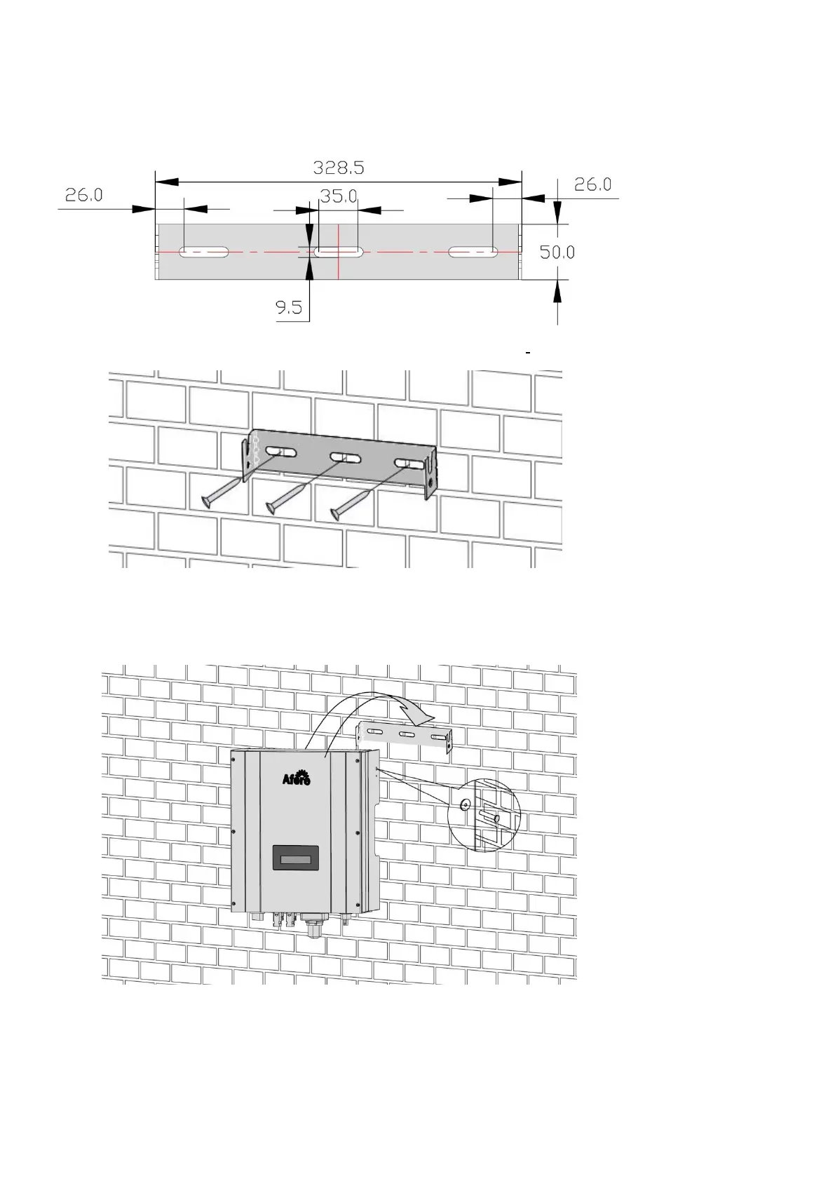 3. Hang the inverter to the mounting bracket and ensure the slot is fitted on the bracket.