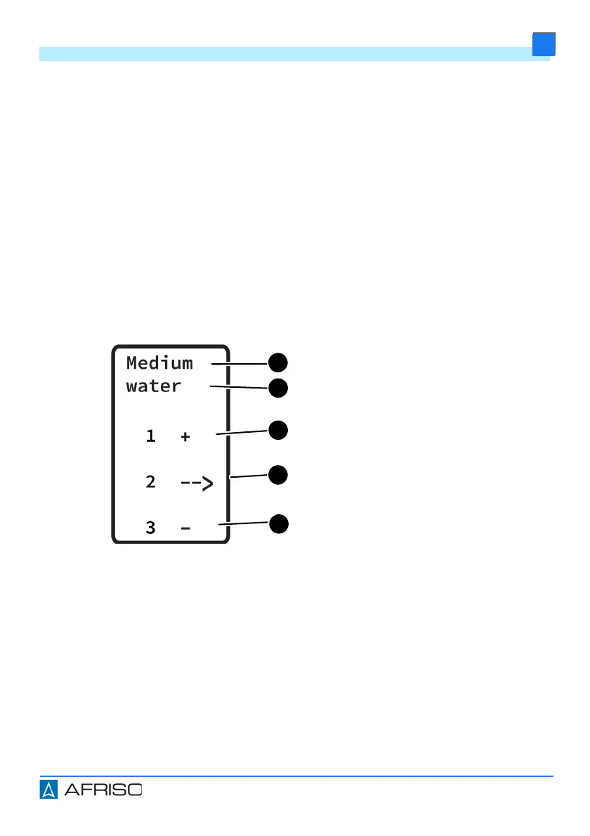 Three keys are available for parameterisation. The display show which menu