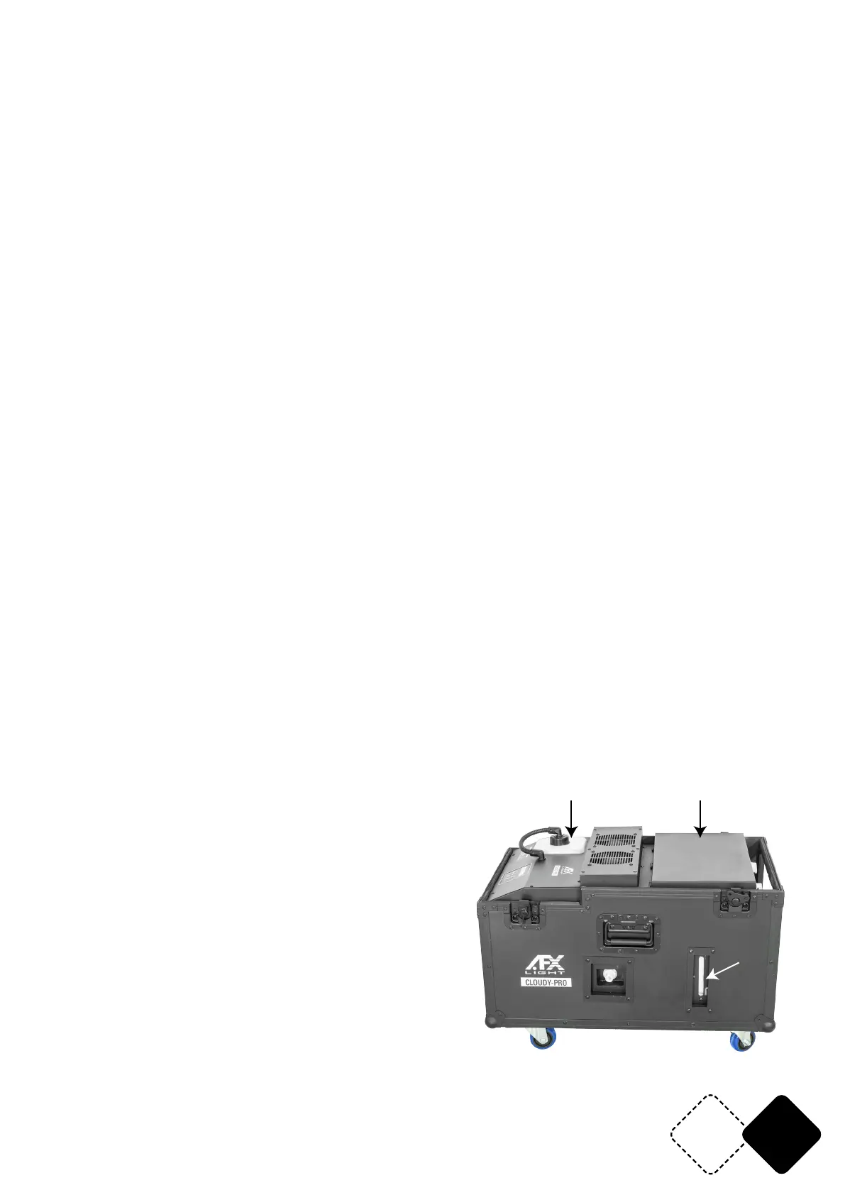 • Antes de llenar el depósito de líquido de humo, desenchufe el cable de alimentación de la máqui-