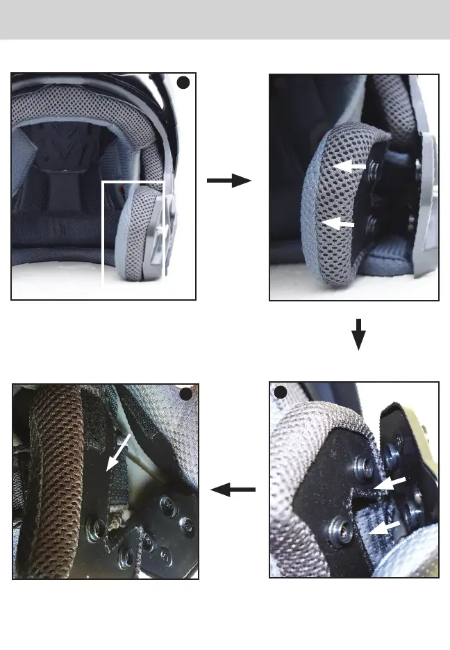 Führen Sie zum Einbauen der Wangenpolster die Schritte 1 bis 4 in