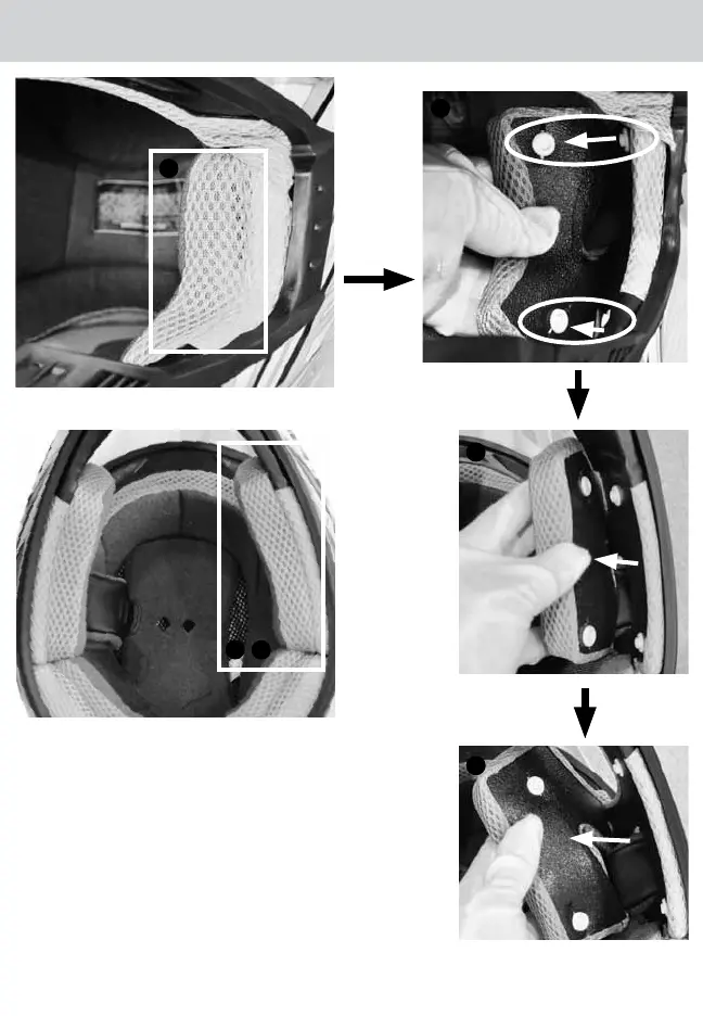 Führen Sie zum Einbauen der Wangenpolster die Schritte 1 bis 3 in