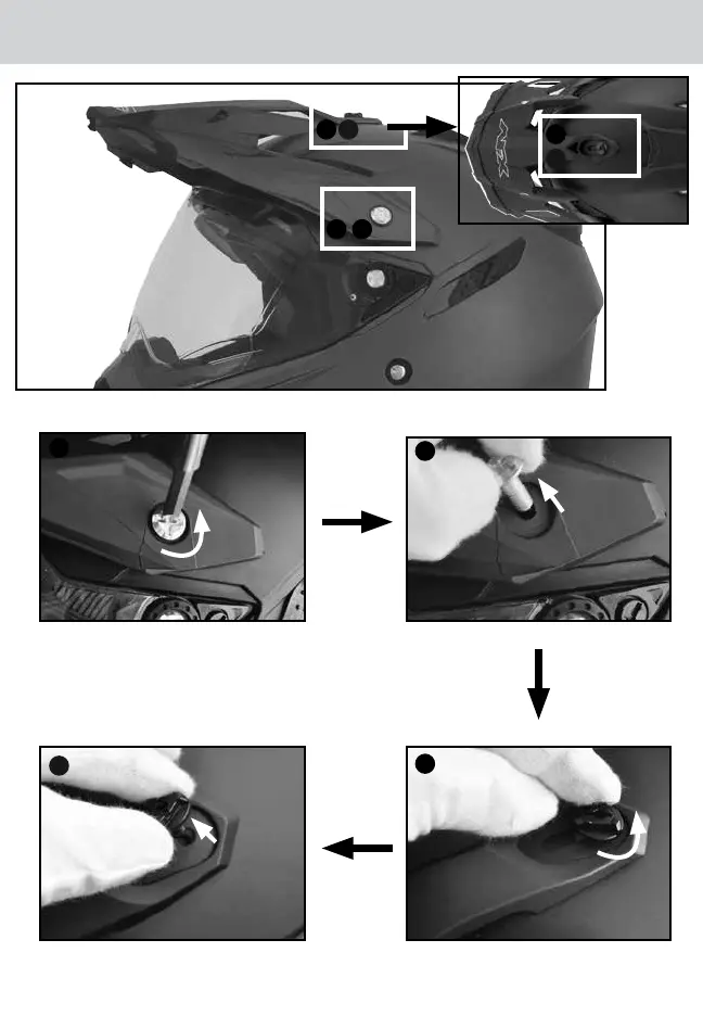 Per reinstallare la visiera, inverti i punti 1-4.
