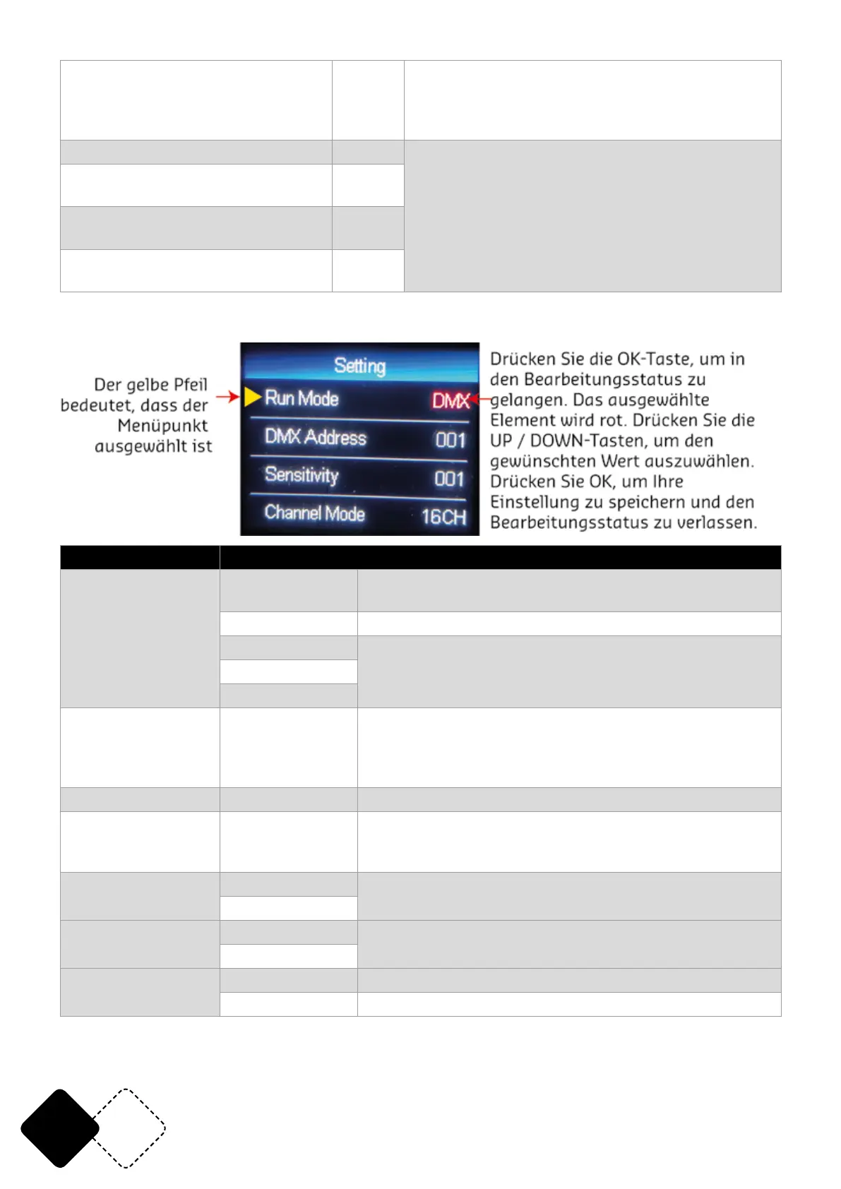 gelangen. Drücken Sie dann UP / DOWN, um die DMX-