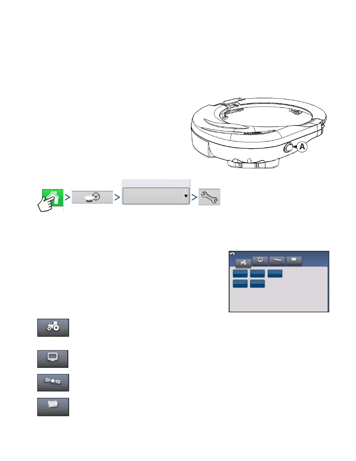 3. Press: Home button > GPS Guidance button > OnTrac2 Steering drop-down > Setup (wrench) button
