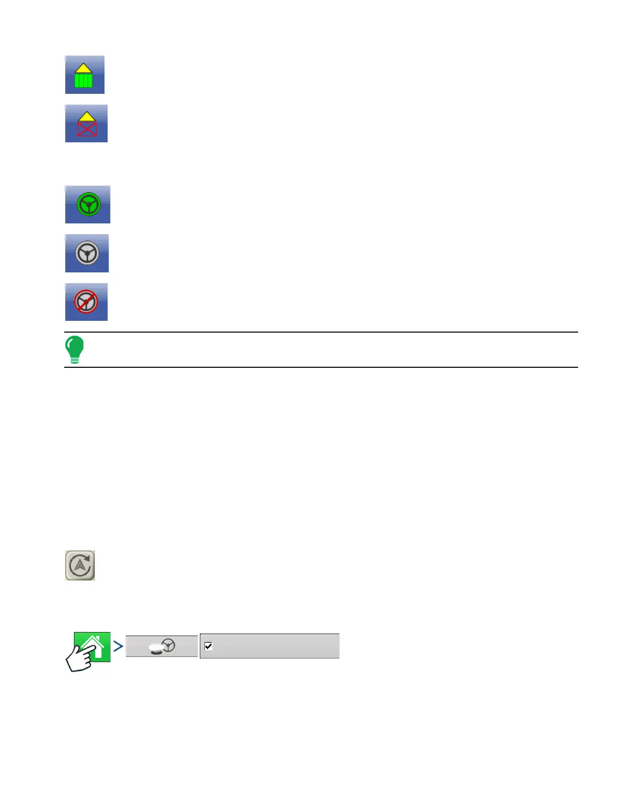 The Engage icon shows that the autosteer system is on, off, or off but ready to engage. The appearance