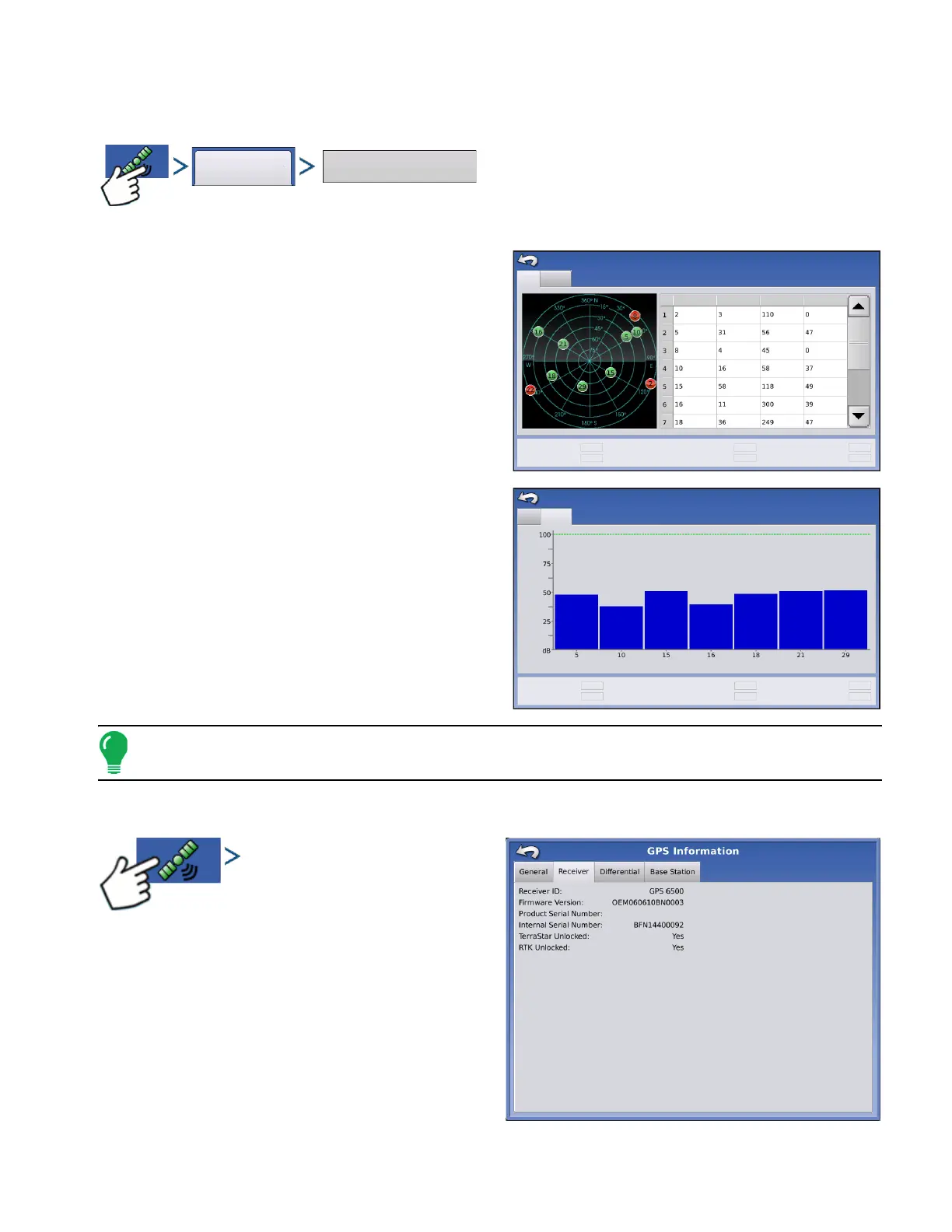 Press: GPS (satellite) button > Receiver tab