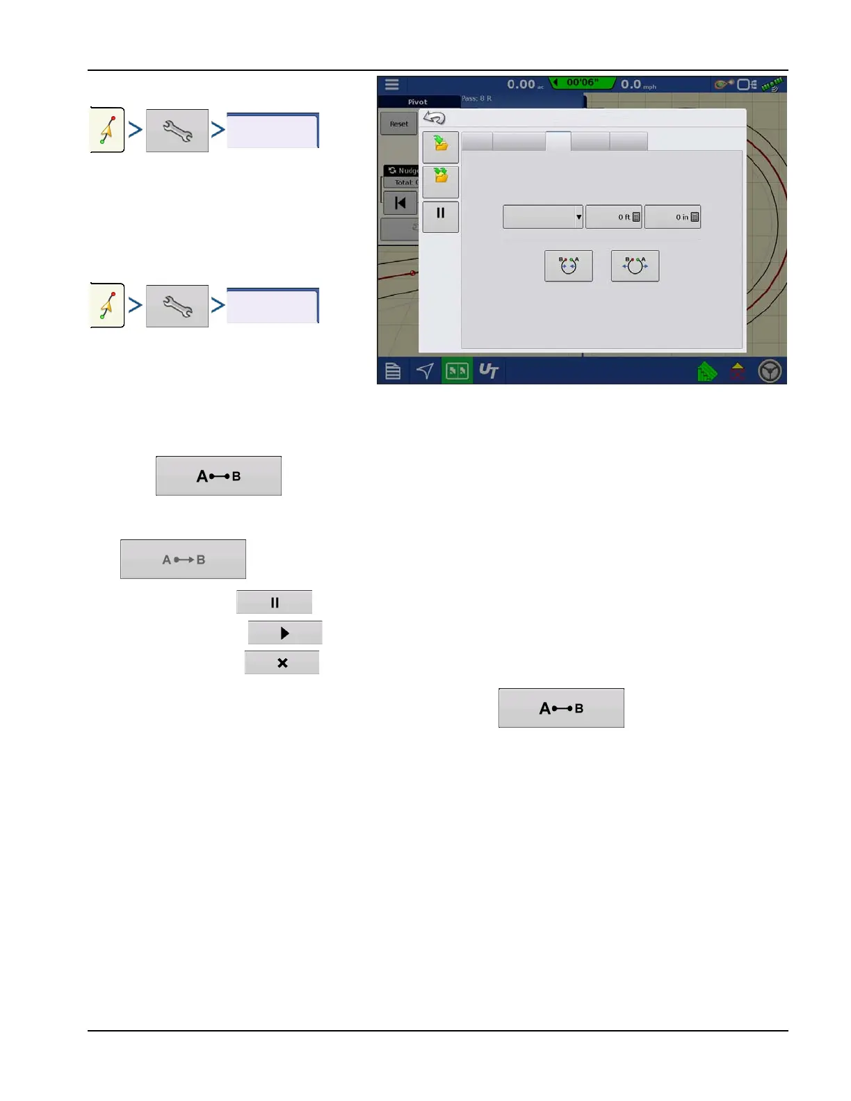 • When almost back to the pivot arm or the edge of the field, press to mark B point, the AB line