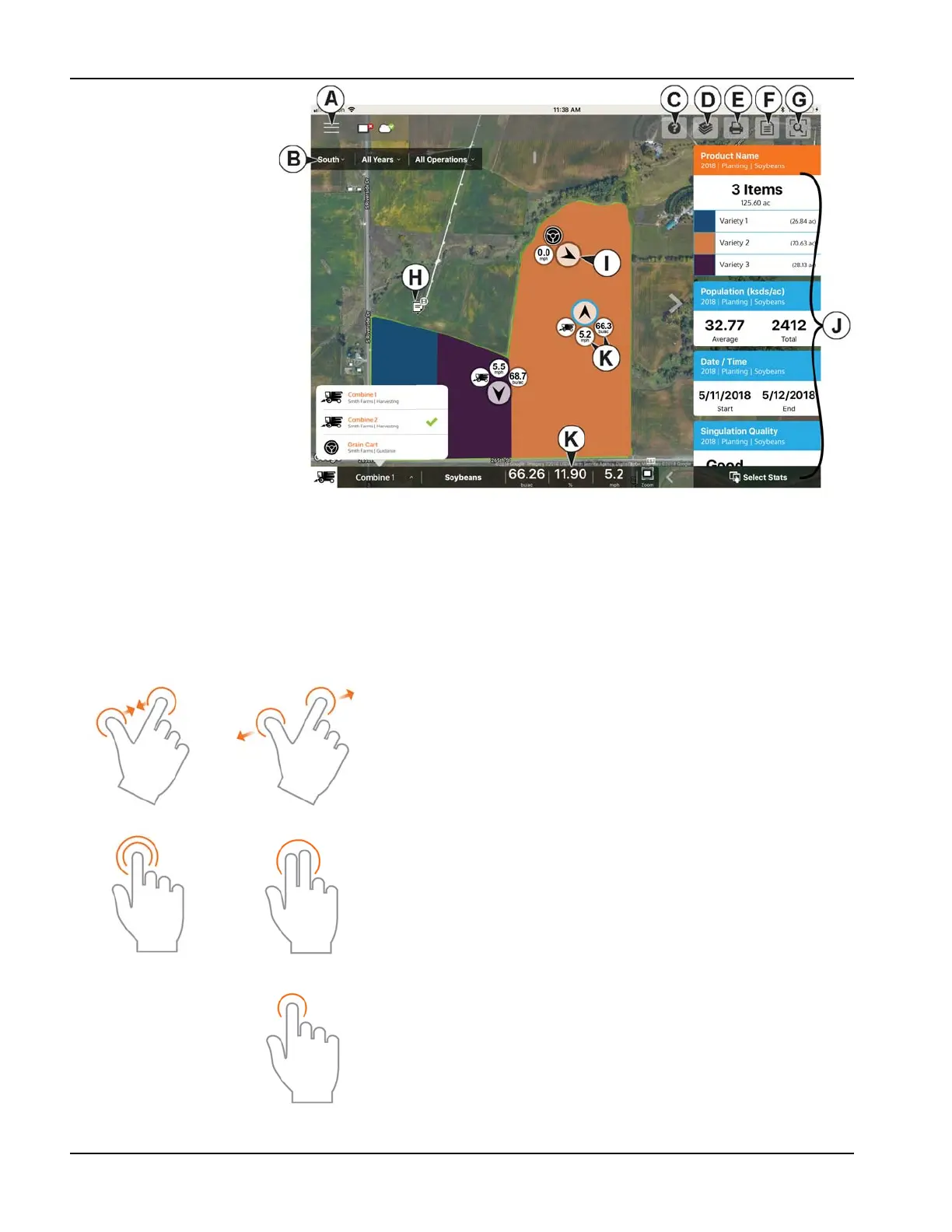 As with any iOS app, AgFiniti Mobile uses gestures. Navigate around the app, select items, and make various changes using