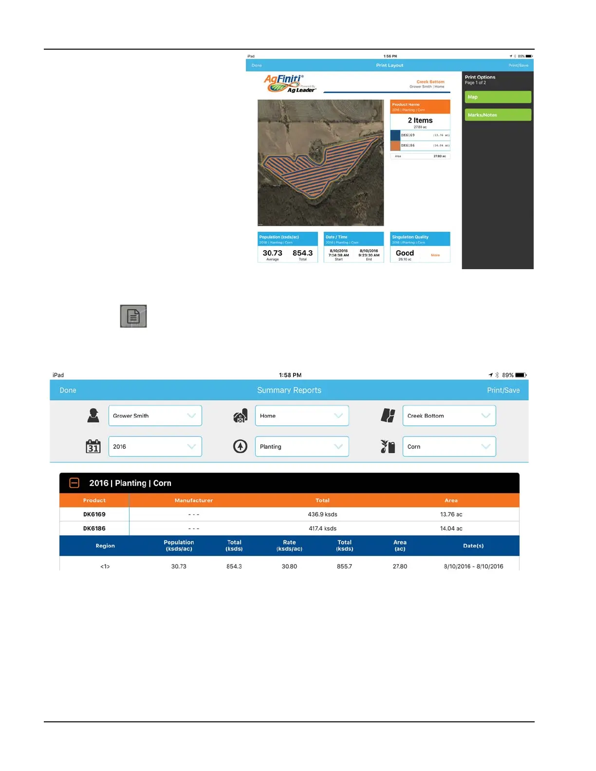 a report containing planting maps, the expanded area will include information for each unique product or, if utilizing