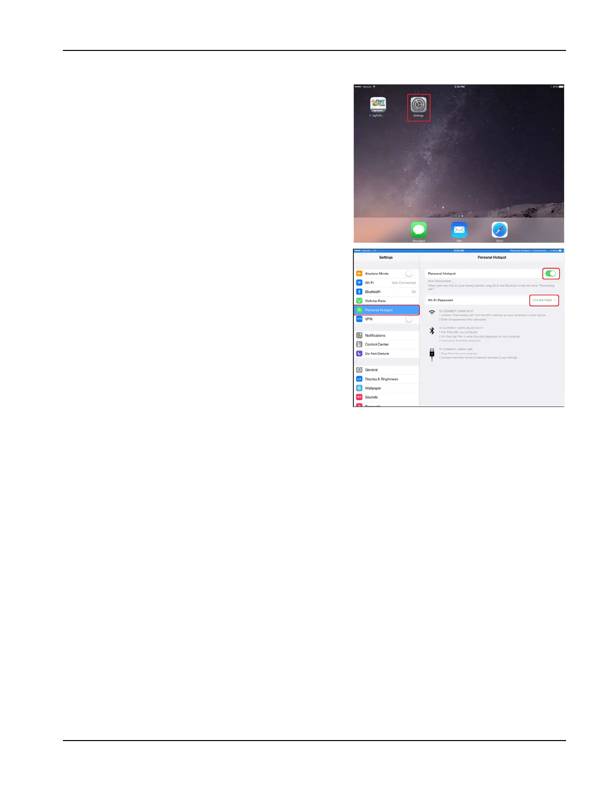 1. To enable Personal Hotspot mode on the iPad, go to the