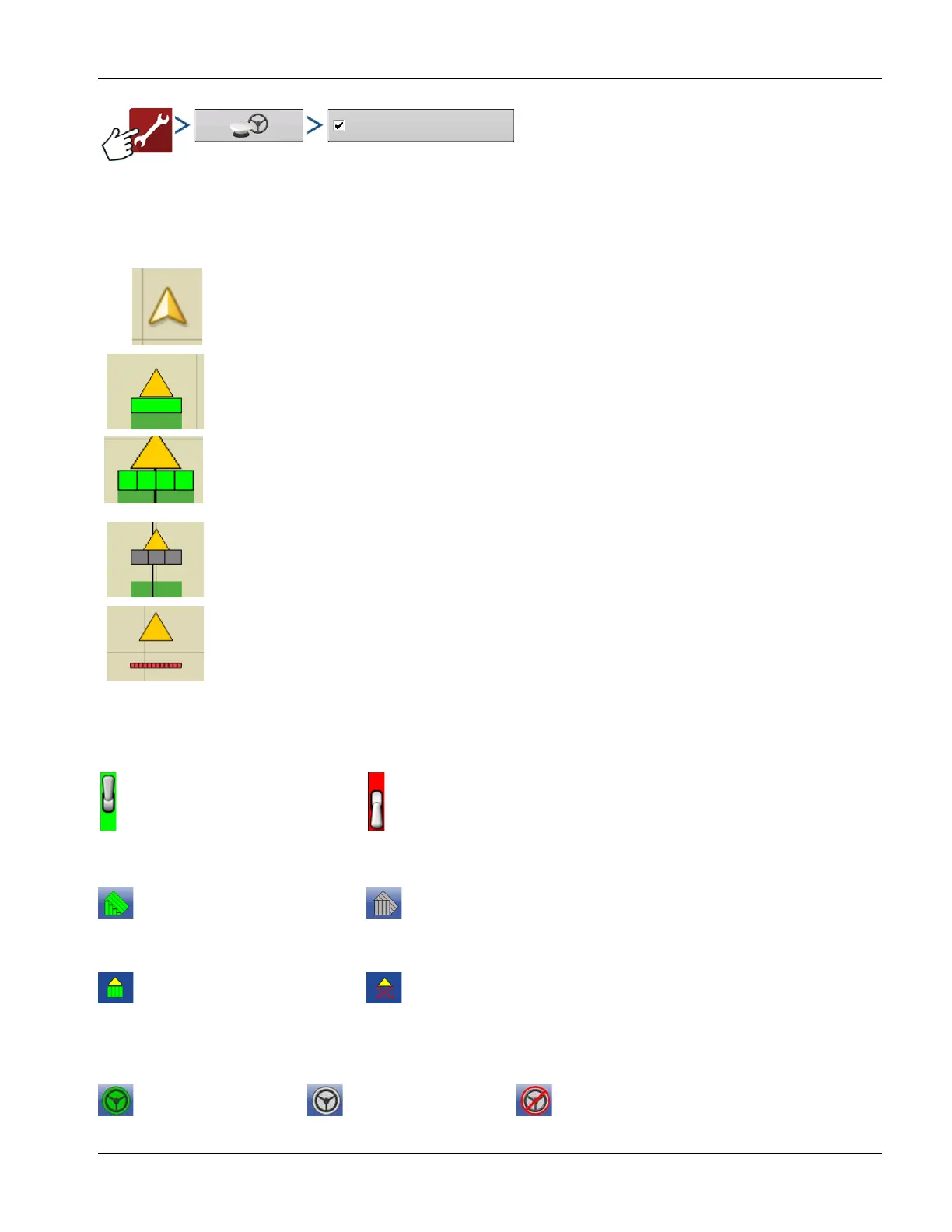 The Engage icon status of the AutoSteer system. The appearance of this icon displays the following: