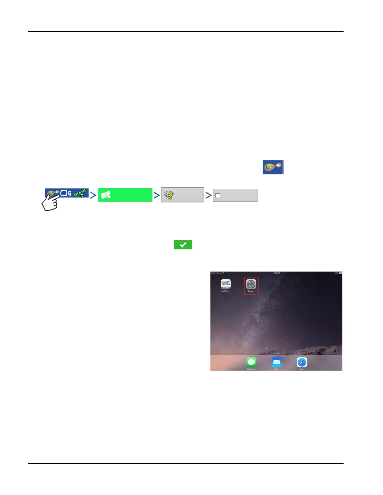 transfer information to AgFiniti Mobile, both through the iPad’s cellular connection and Wi-Fi hotspot. This connection type