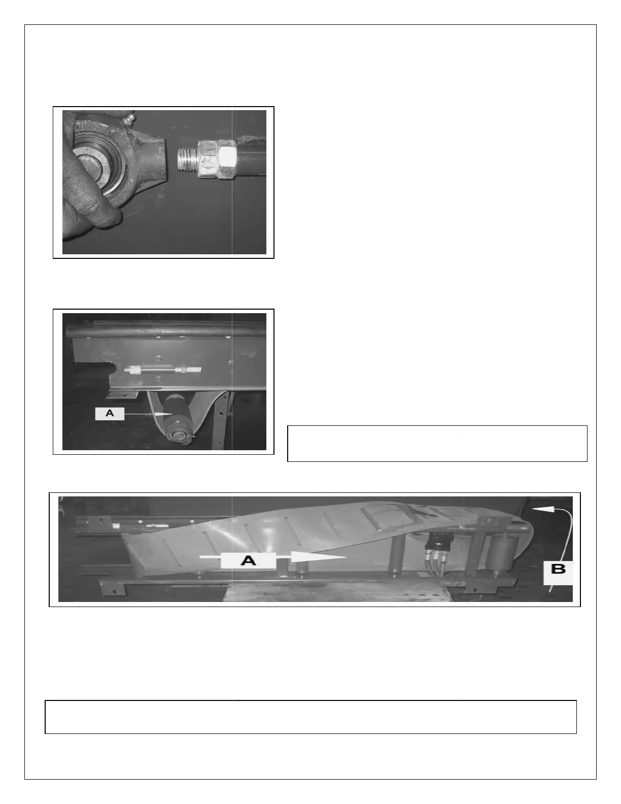 5. Conveyor belt, now to be pulled to other end of the bed (A) Fig 14. Rotate belt in direction (B) Fig 14), allowing belt to
