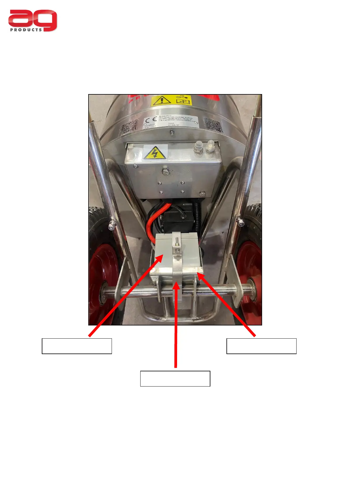 The AG Mini 12 V battery is located underneath the chassis of the dispenser. The battery is