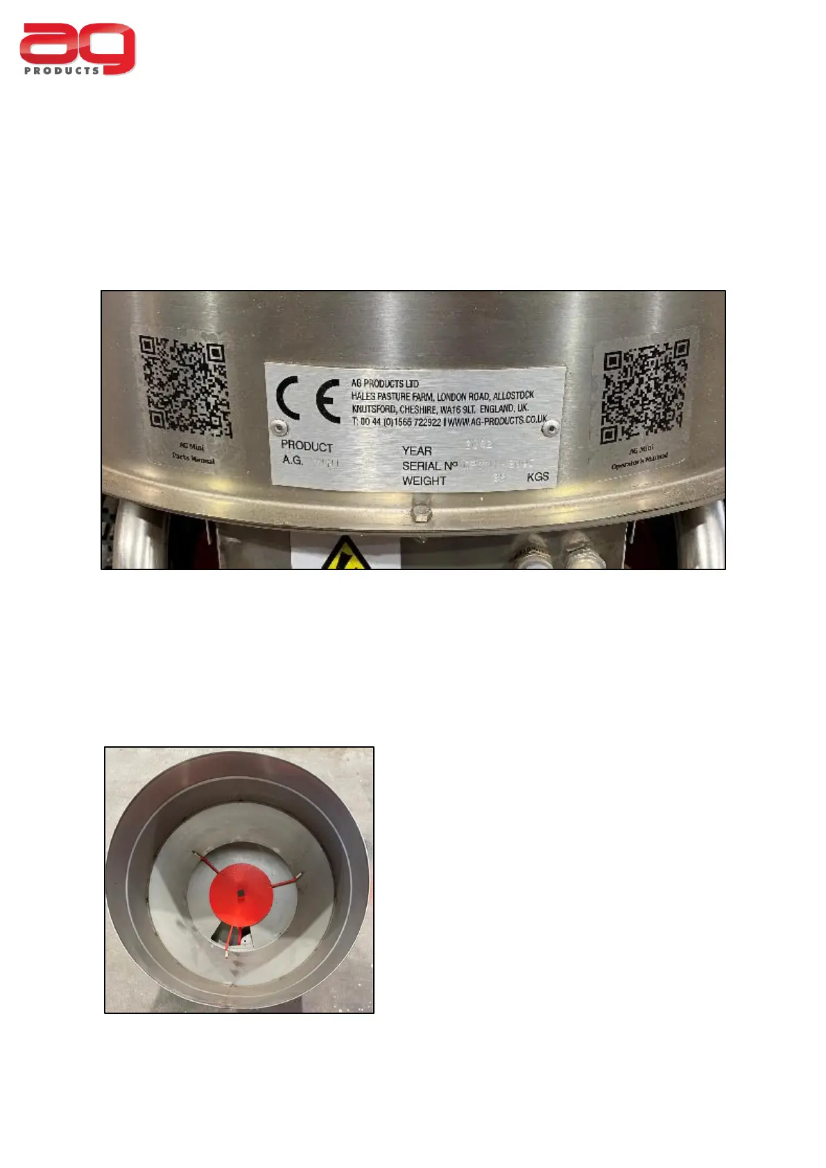 Two QR codes can be found on the AG Mini hopper, located either side of the serial plate.
