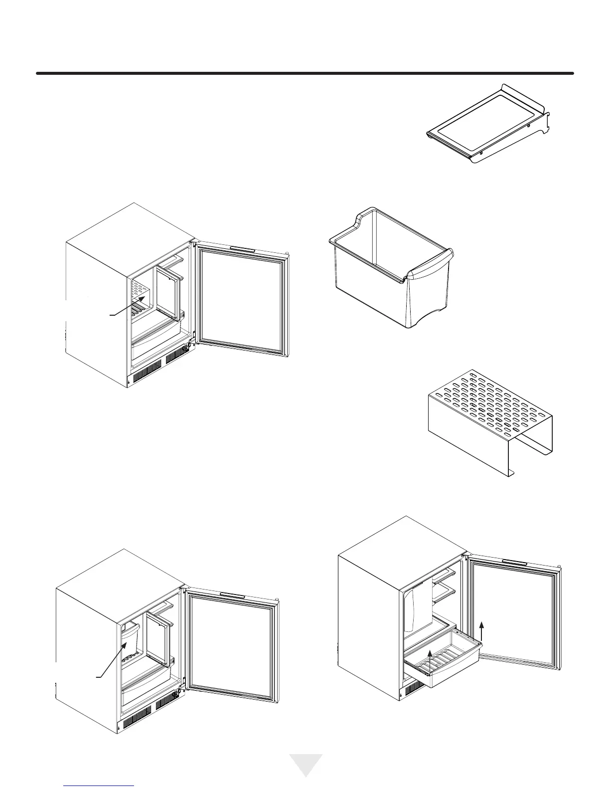 (1) Machine à glaçons avec son bac à glaçons, voir la