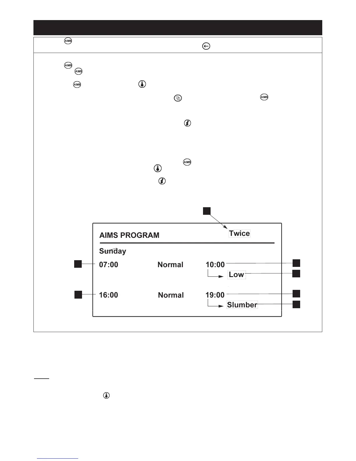 4. Press the button then press the button to alter the temperature setting to ‘Low’, ‘Slumber’, or ‘Off’.