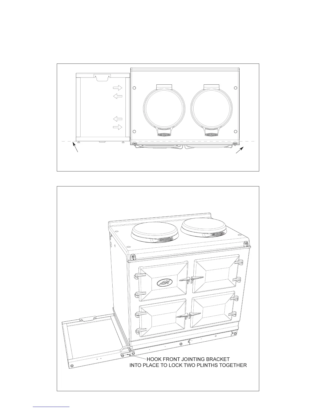 contact with the AGA Dual Control plinth, and locking screws can now be tightened.