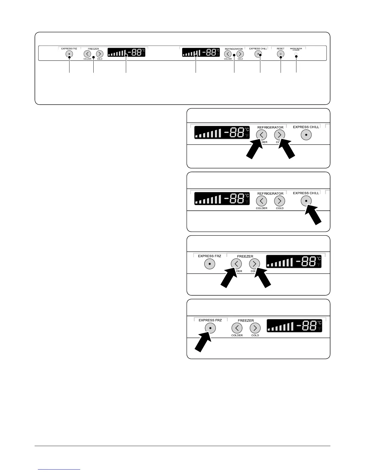 or ‘>’ (Fig.2-14) and the freezer digital display will icker.