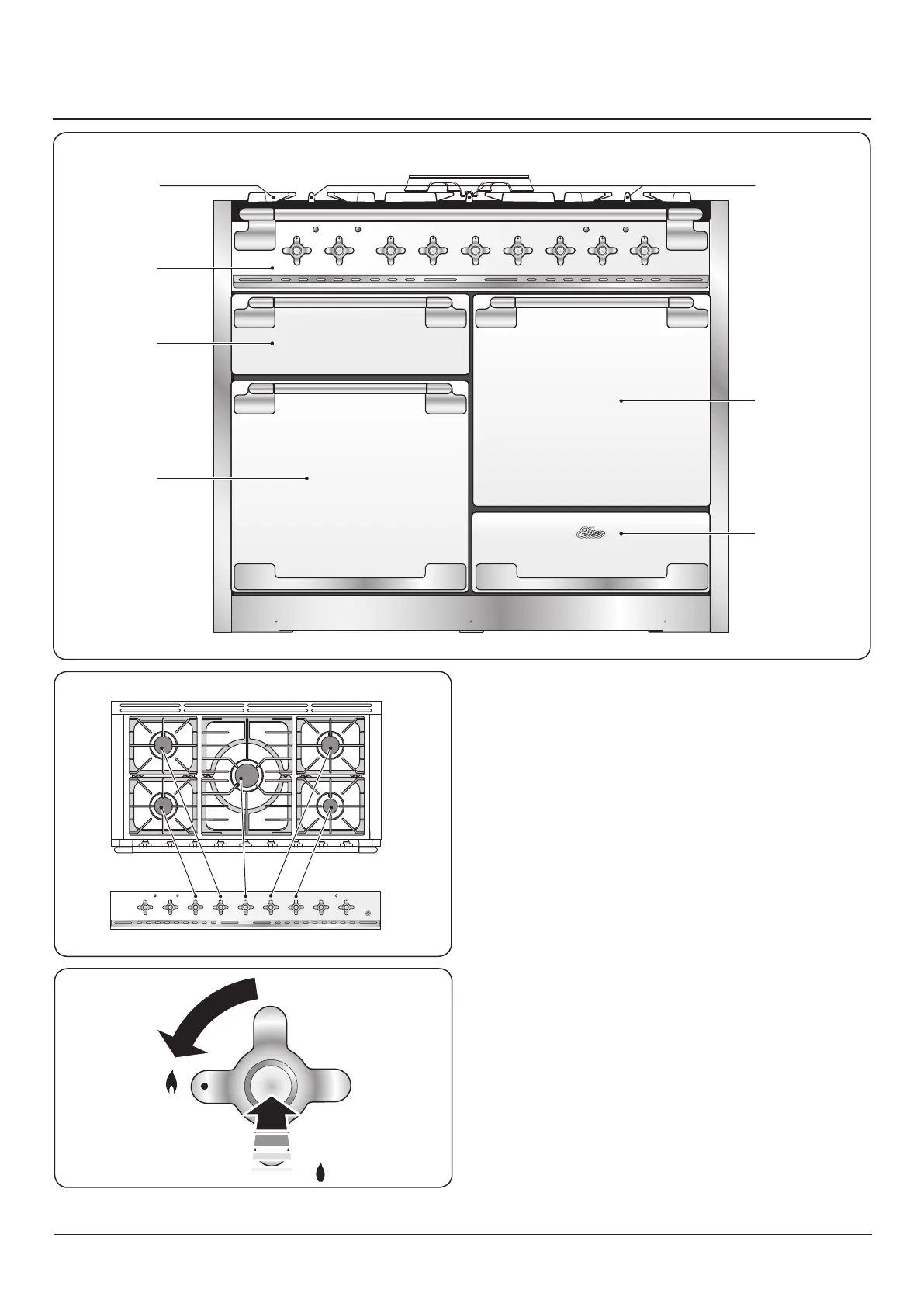 To light a burner, push in the selected burner control knob