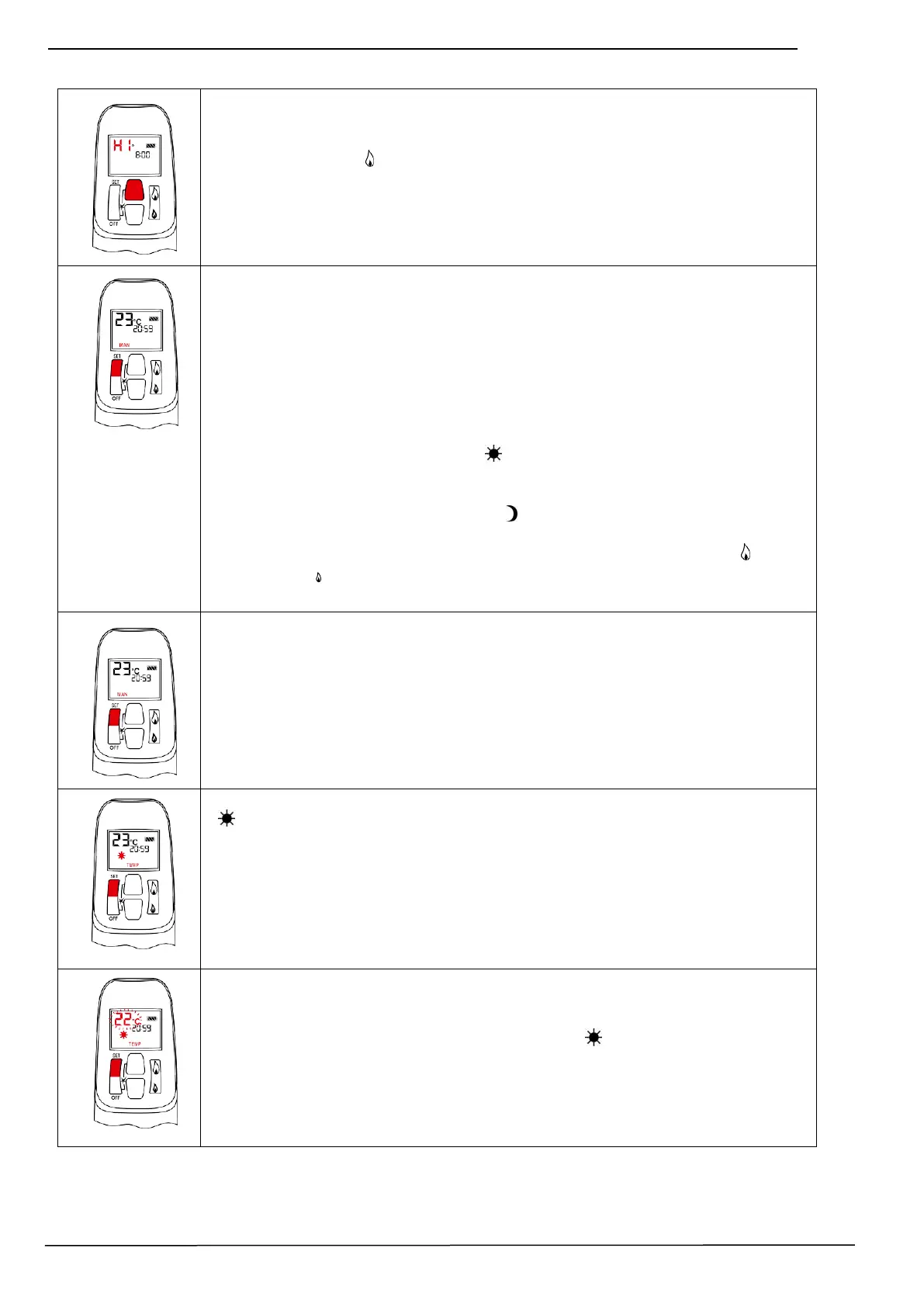 button to scroll to TEMP ( SUN LOGO) mode
