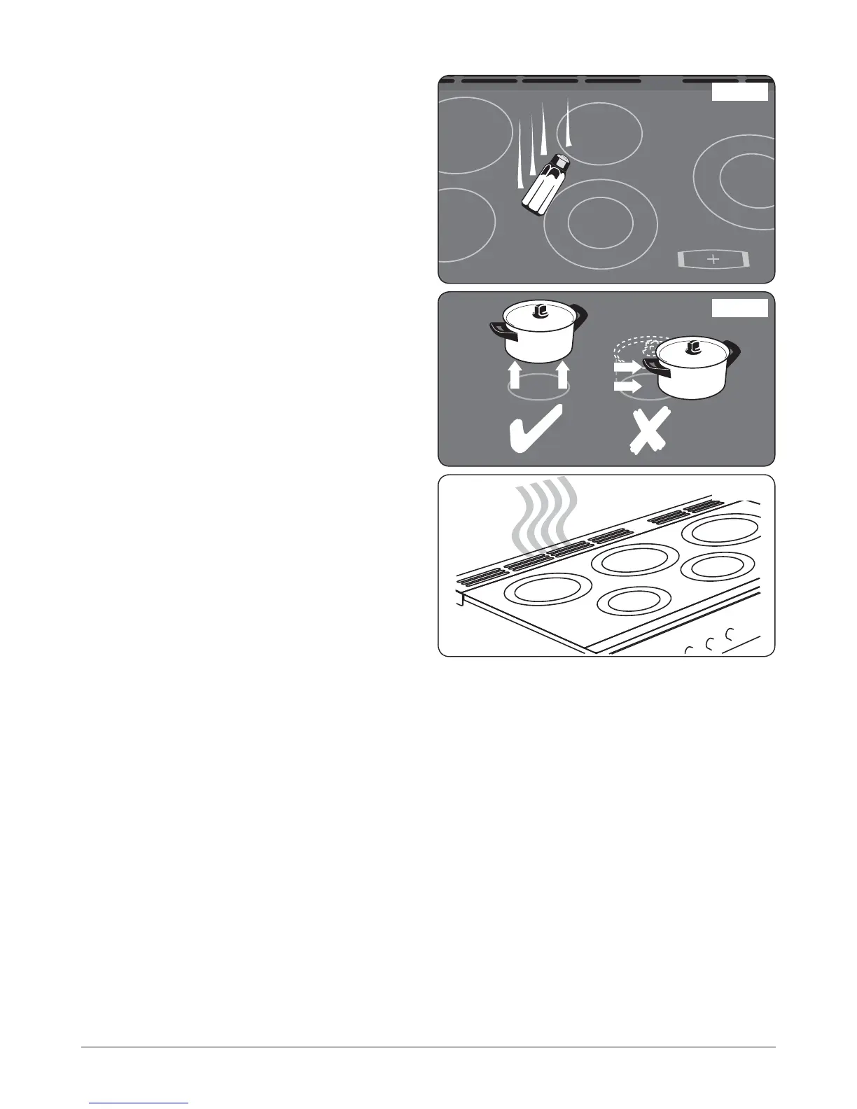 Always LIFT pans o the hob. Sliding pans may cause marks