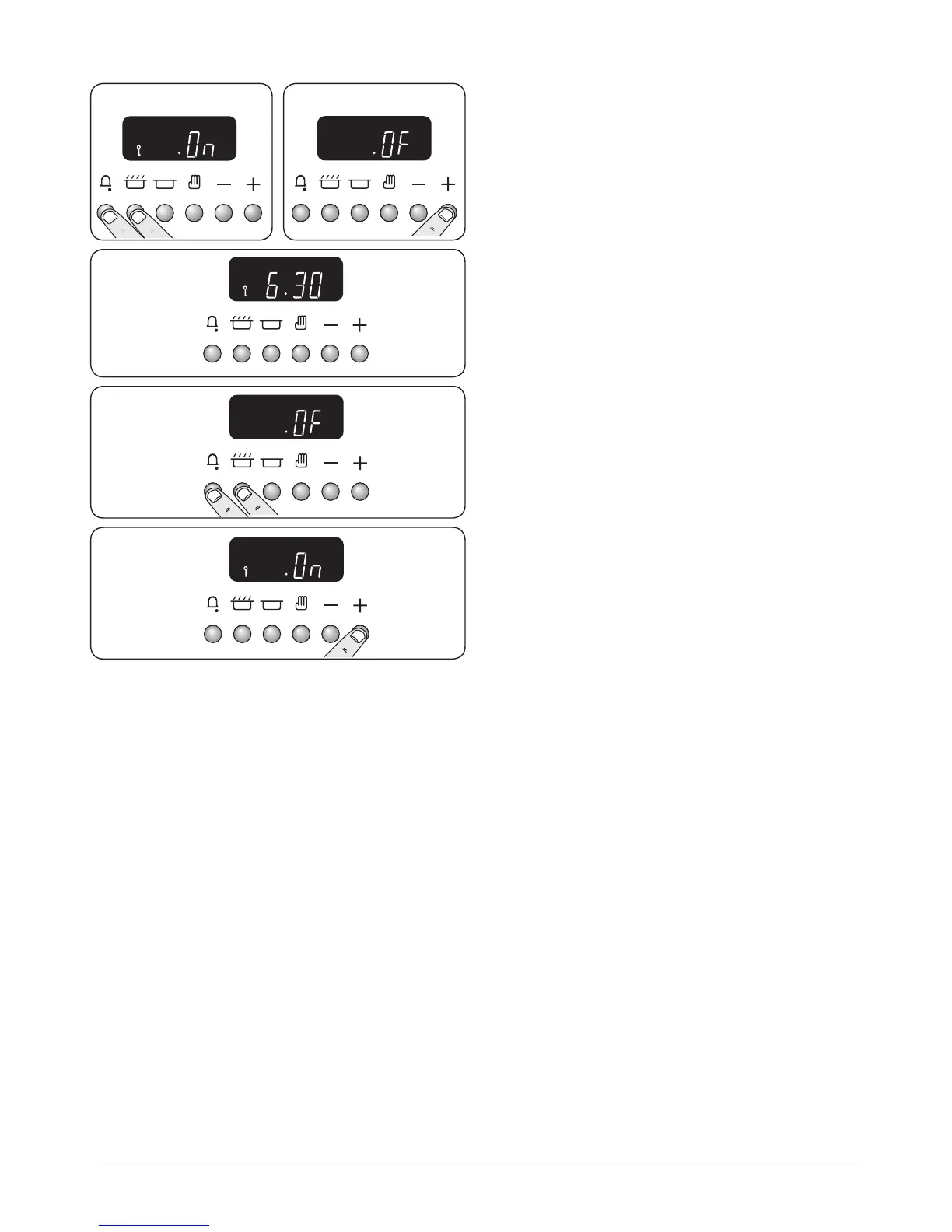Hold the Minute Minder [C] and Cook time [D] buttons for