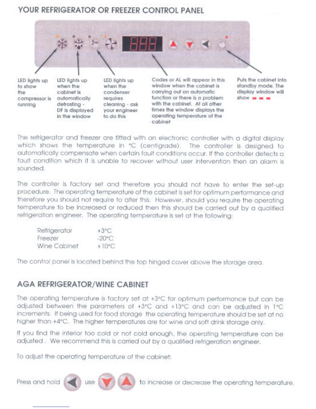 AGA R2 - YOUR REFRIGERATOR OR FREEZER CONTROL PANEL