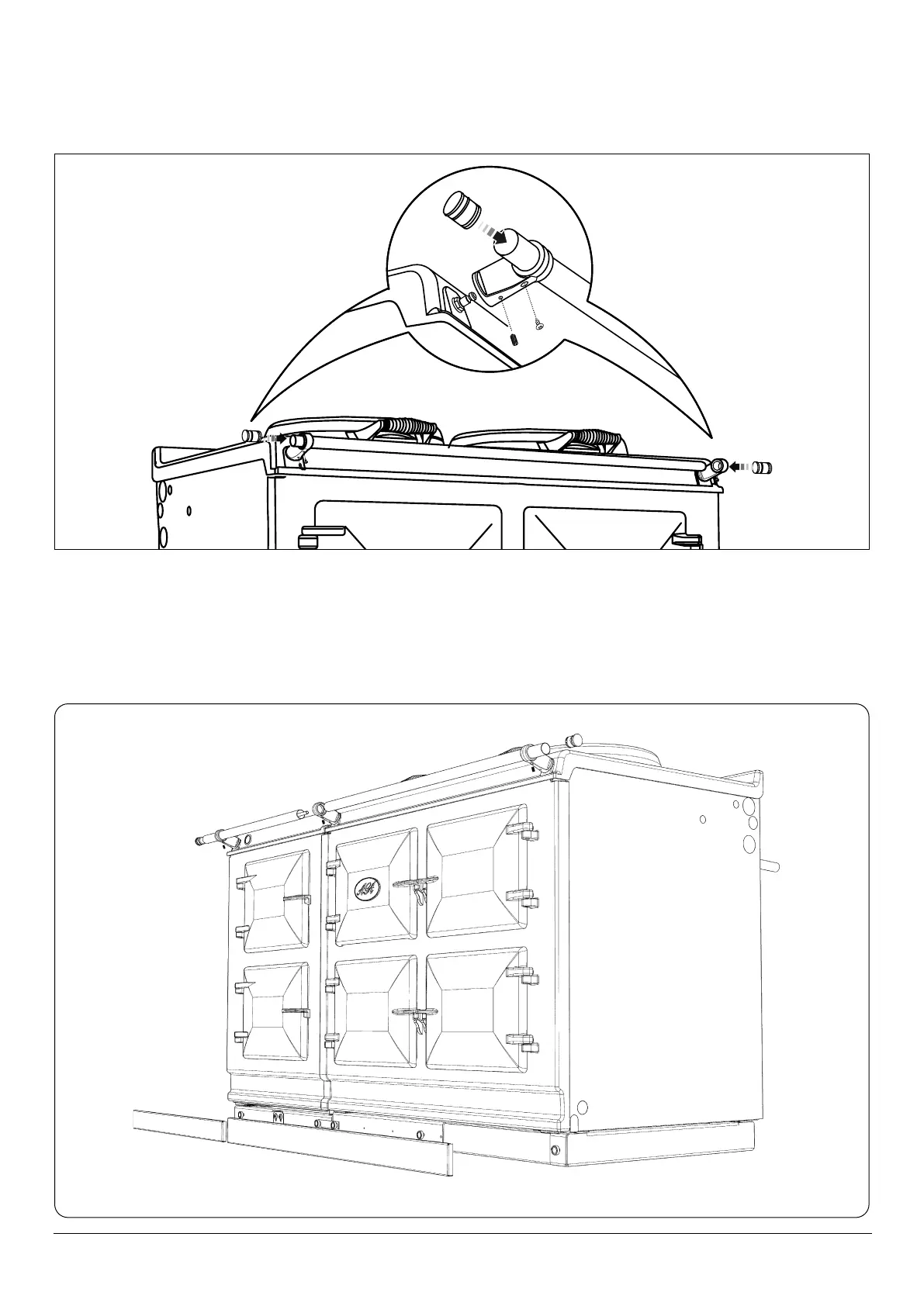11. On 5 oven appliances, t allthread stud into the insert located in the one end of the handrail, then feed the handrail