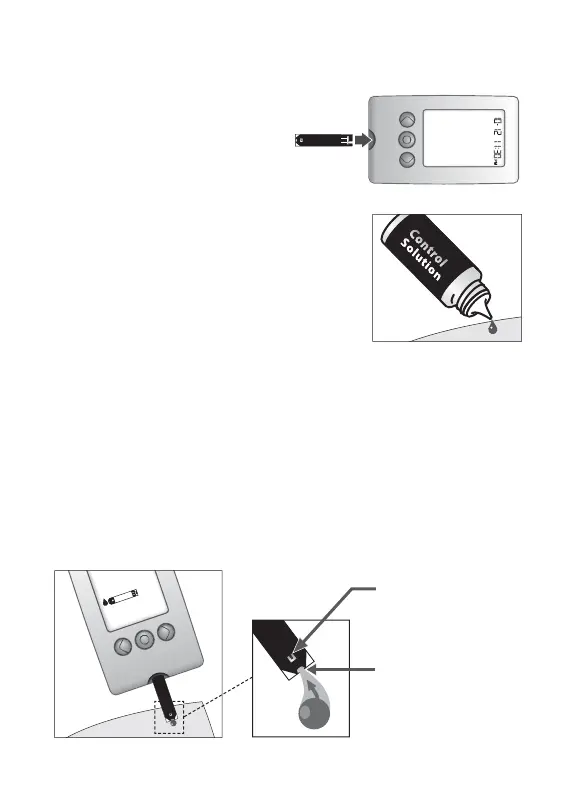 Bring the tip of the test strip to the control solution sample.