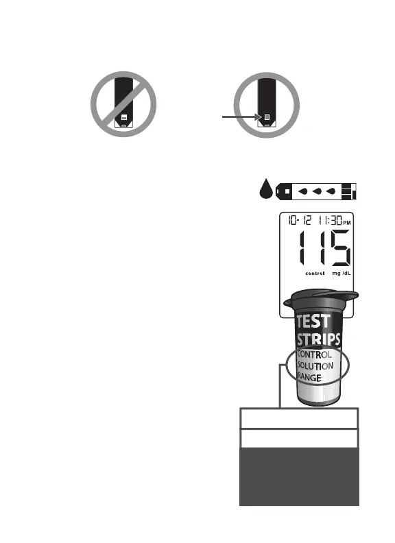 the tip of the test strip from the control solution sample.