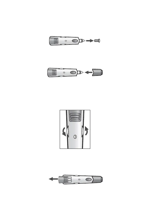 Twist the Lancet Cover O : Hold the lancet firmly in place