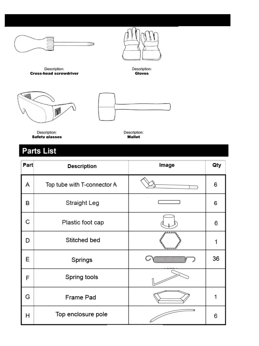 AGame 166044 - Tools Required; Parts List
