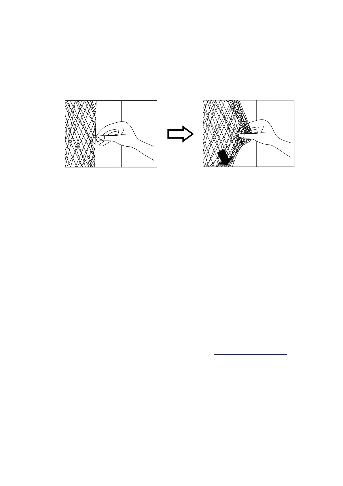 section of the netting between fingers and pulling downward. Please see diagram below.