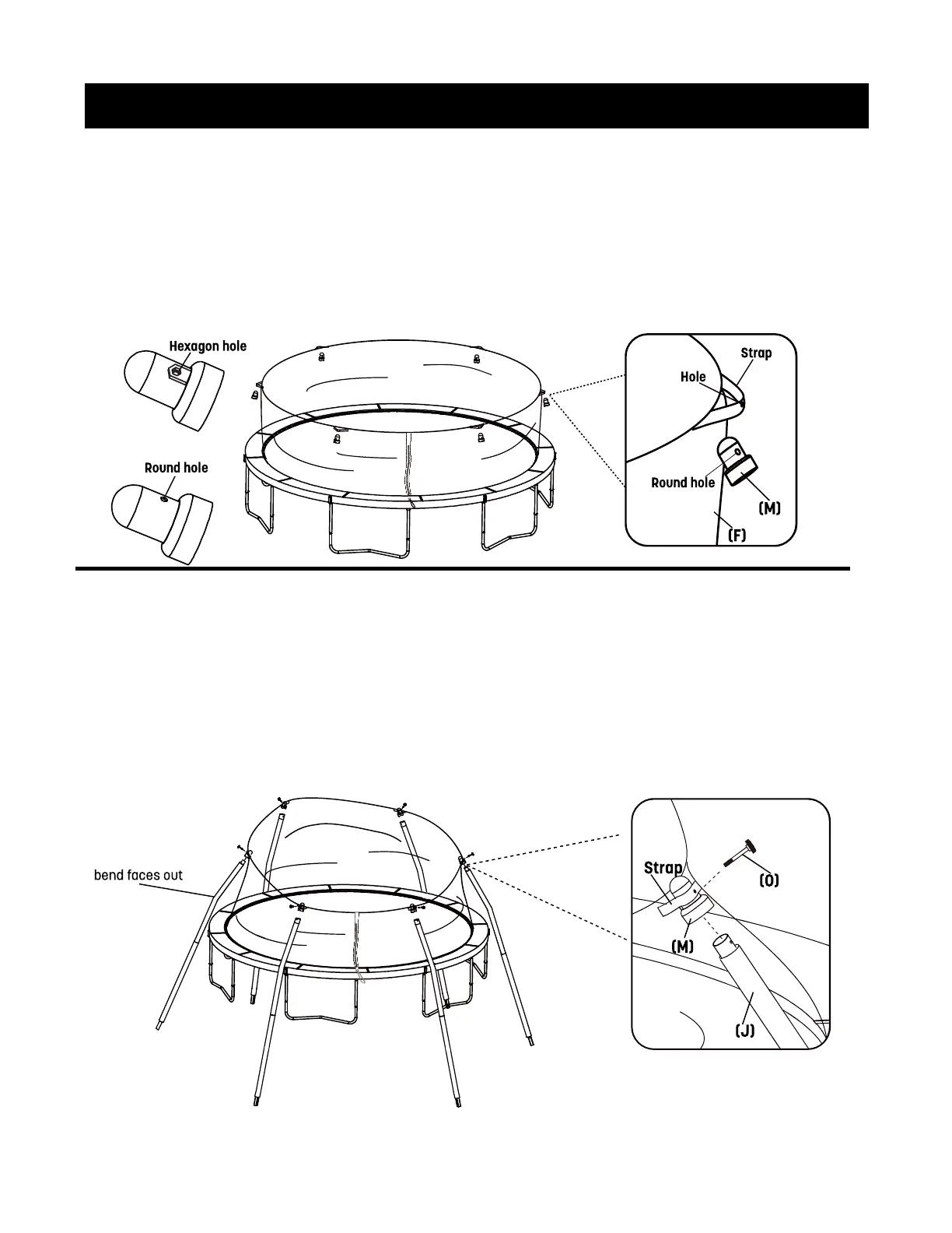 enclosure poles are facing out away from the center of the trampoline. Make sure