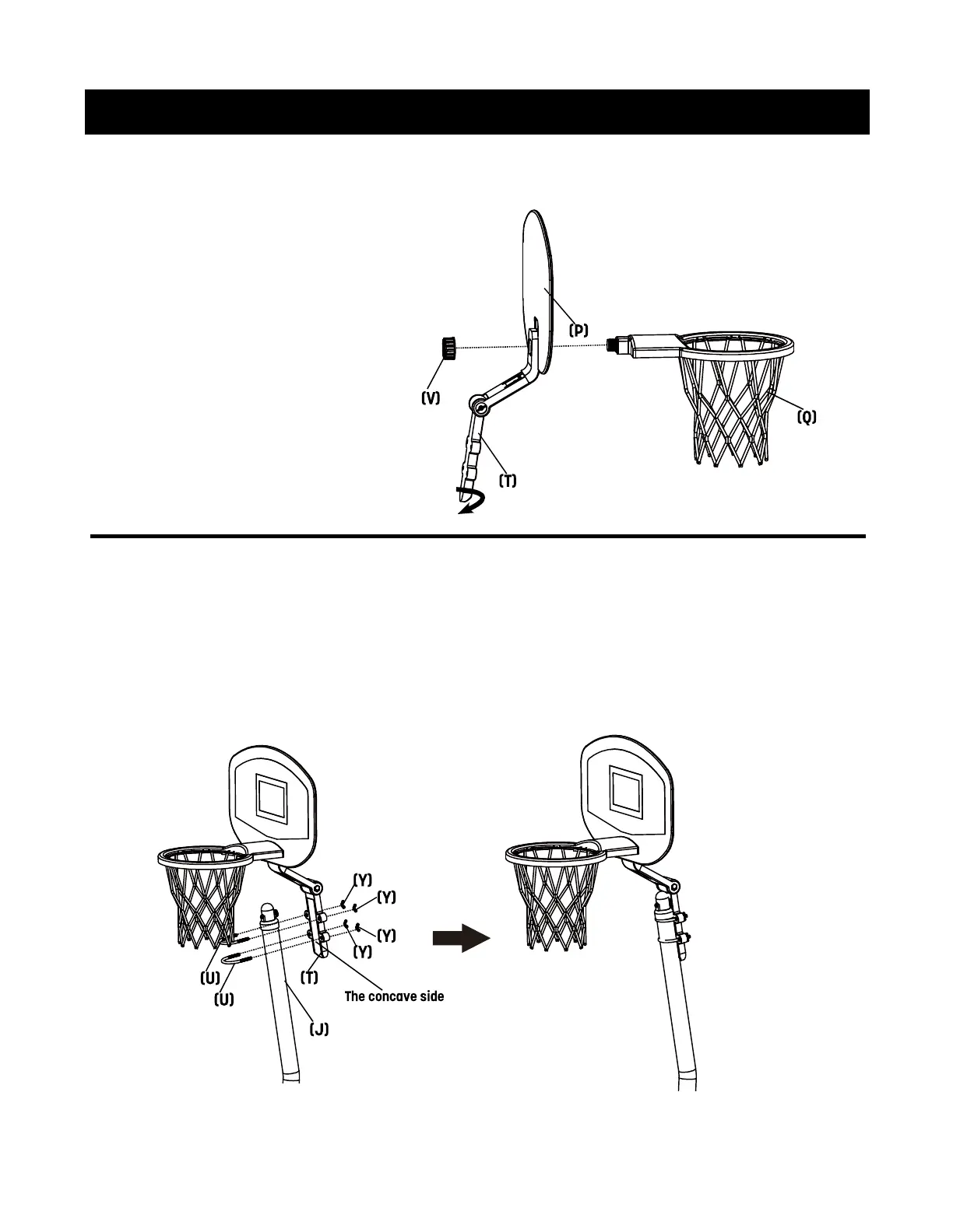 Attach the backboard (P) and rim