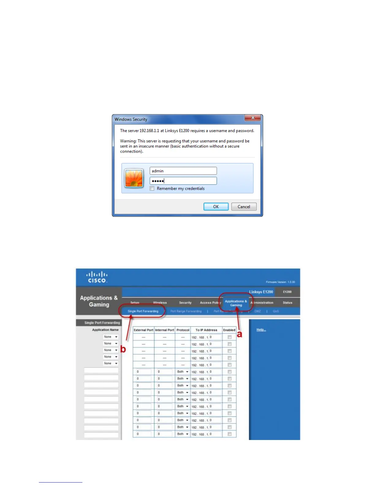 Next, proceed to click on the category “Applications & Gaming,” then click on “Single Port Forwarding”