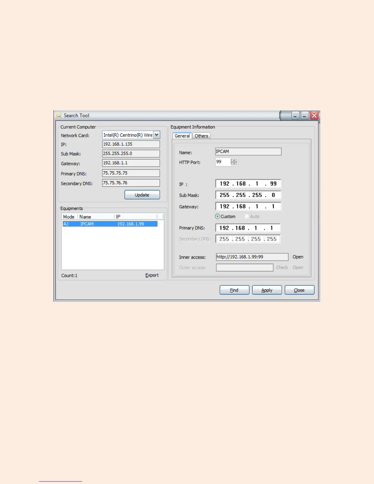 Figure 5.1 – Search Tool IP Camera Software
