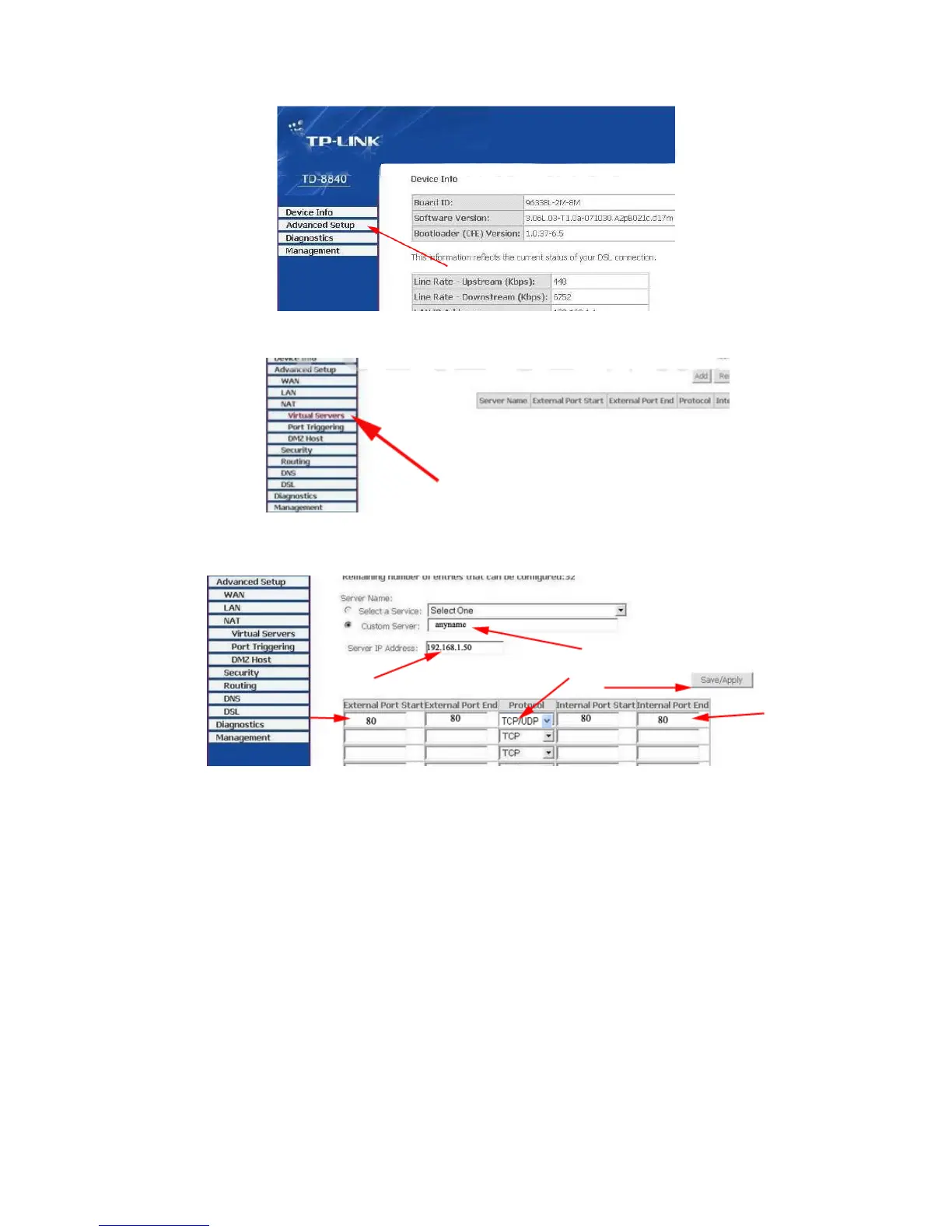 " 192.168.1.50 ", protocol select "TCP /UDP " OR ”