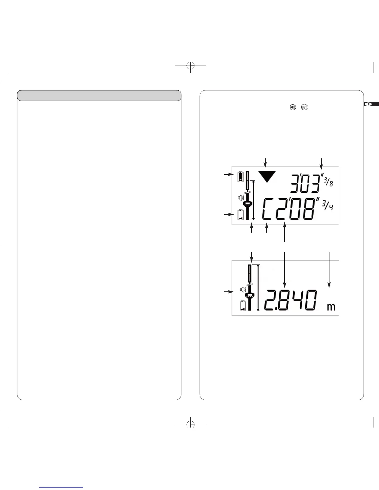 • Appuyer et maintenir enfoncée pour le mode toise (ne nécessite