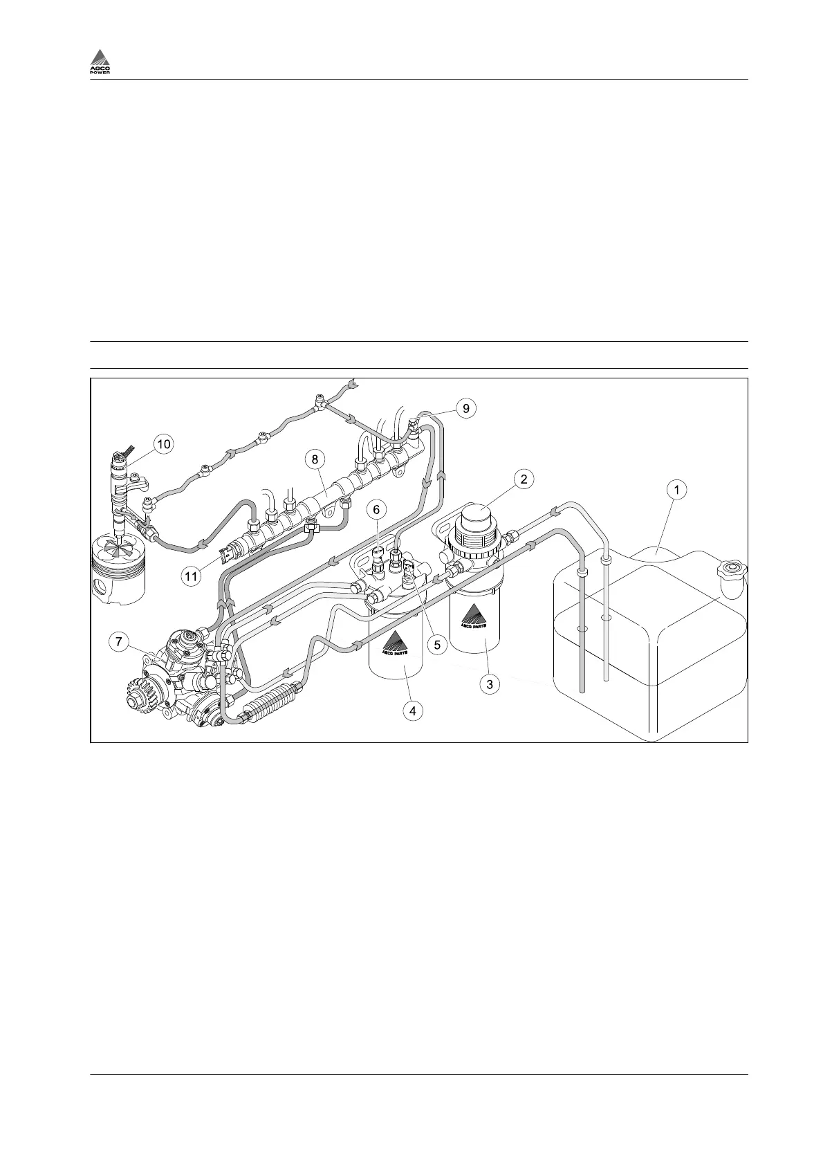Fuel is drawn from the tank via the pre-filter, through the main fuel filter to the high pressure pump. From