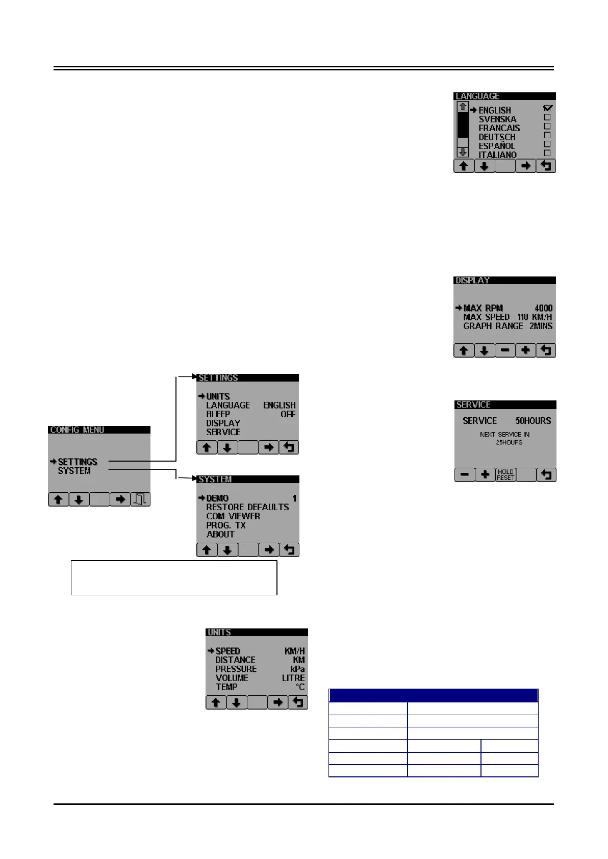 gauges, engine service interval etc.