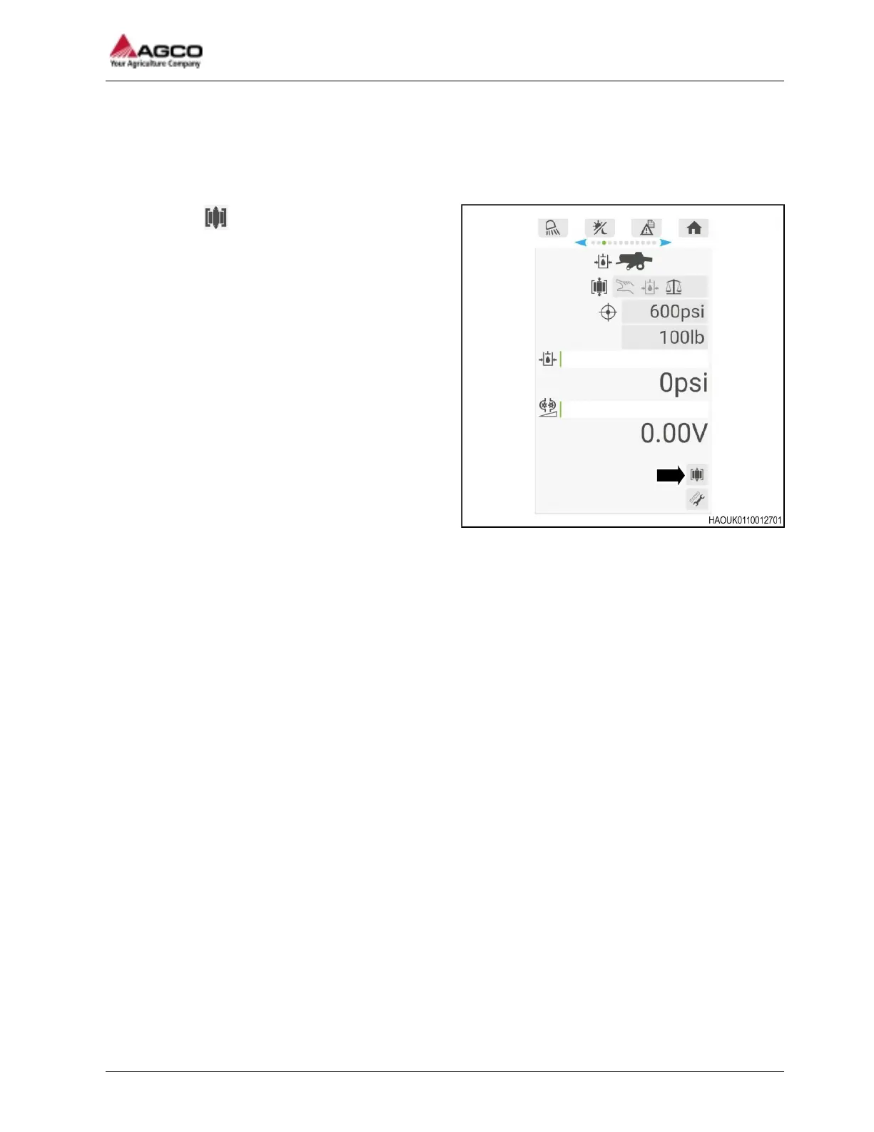 2. Select the icon to release the hydraulic
